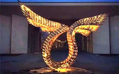 戶外園林不銹鋼雕塑除傳遞美,還需要考慮其耐用性,優選304、316以上型材,在造型上也需要避免尖銳棱角以防意外,還需要考慮到其反射,以免對行人車輛造成視覺干擾。